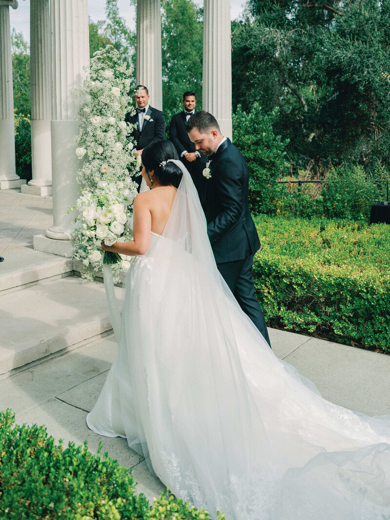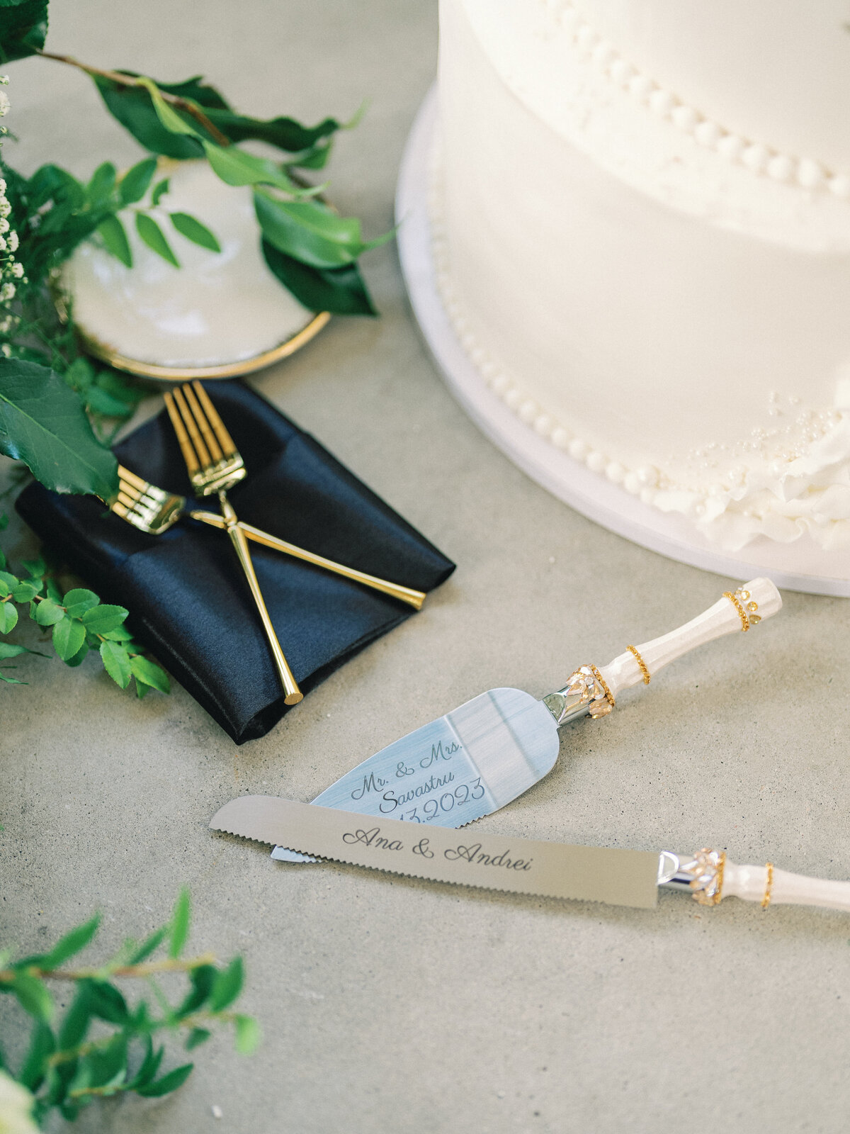 Ana and Andrei's wedding styling in clean, black and white color palette was both timeless and modern with unique personal touches throughout. Hosted by one our favorite local venues, the historic Villa Montalvo, they were able to fulfill their dreams of a Mediterranean-inspired wedding in California.